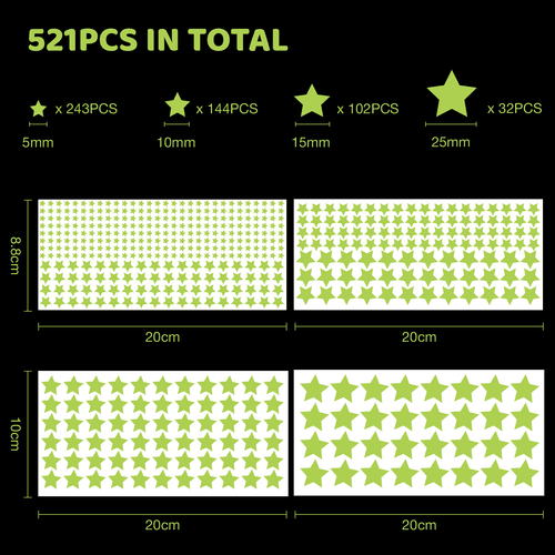 Pack of 521 Luminous Stars Wall Stickers for Children's Room, Glow in the Dark Stars, Starry Sky Lum